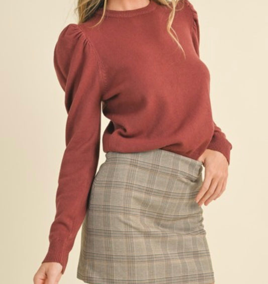 Puff Sleeve Basic Sweater Multiple Colors
