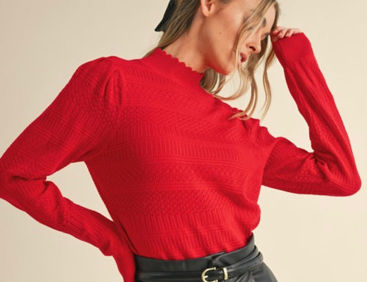 Sold outRed Scalloped Edge Sweater